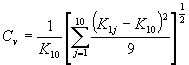 和十次测读值K1j的平均值K10及其相对标准偏差Cv